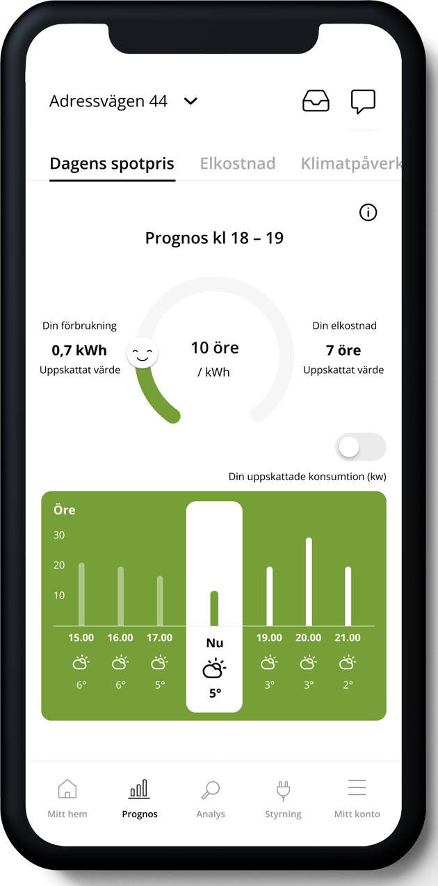 *Uppgifterna baseras på de val du gjort under inställningar, från våra energiexperter samt genom data från Energimyndigheten.