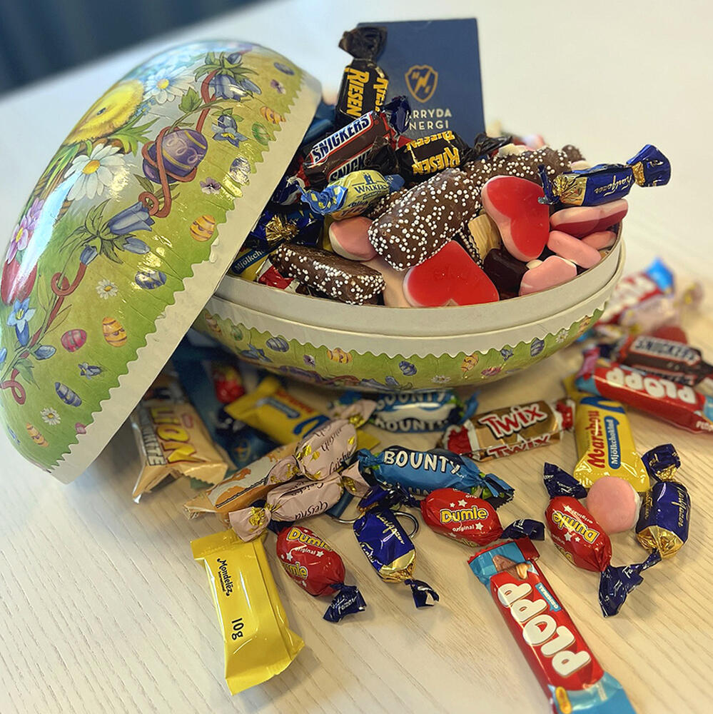 1. Gilla vår Facebooksida och kommentera hur mycket du tror att detta välfyllda påskägg väger.