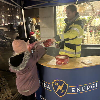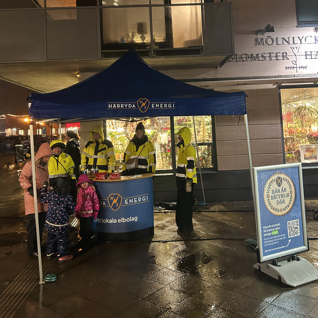 Självklart var vi på Härryda Energi på plats – laddade med julgodis och pepparkakor i det blåsiga regnovädret.