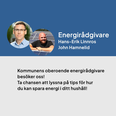 Kommunens oberoende energirådgivare Hans Erik Kinnros och John Hamnelid är också på plats med tips och råd på hur du kan spara energi i ditt hushåll.